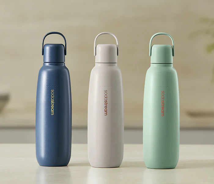 SodaStream fizz&go Stainless Steel er en isolerende flaske lavet af rustfrit stål til at holde drikkevarens temperatur i op til 12 timer. Den tåler opvaskemaskine og har et blødt håndtag, der gør den nem at tage med.