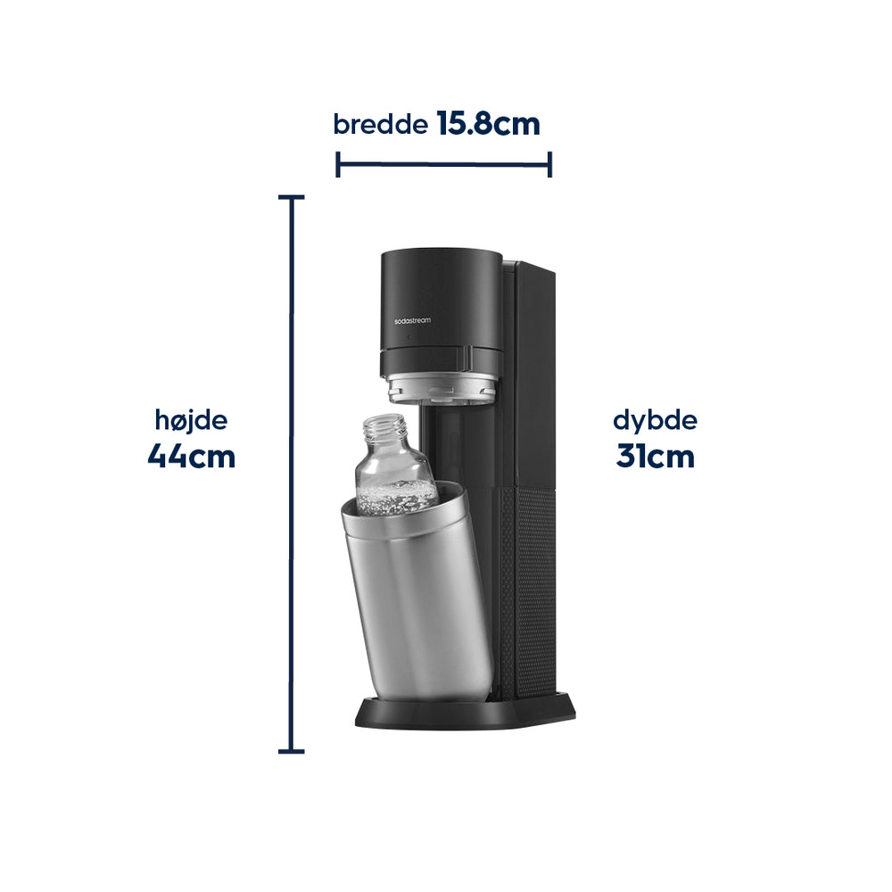 Danskvandsmaskinen Sodastream DUO® er vores nye måde at lave brus på! Med sit slanke, kompakte design kan den fungere med både glas- og plasticflasker. Det bliver både nemt og hurtigt at lave danskvand!