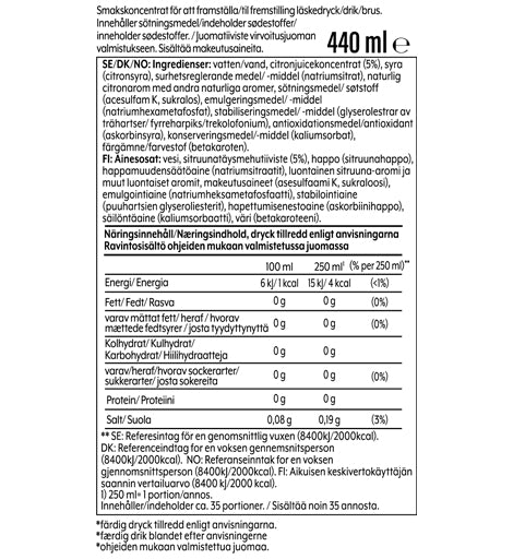 Flasken indeholder 440 ml, som giver ca. 9 liter færdig drik.