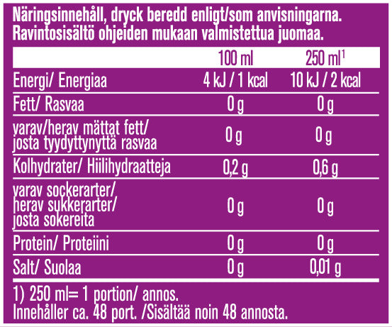 •Energi: 4 kJ/0,9 kcal